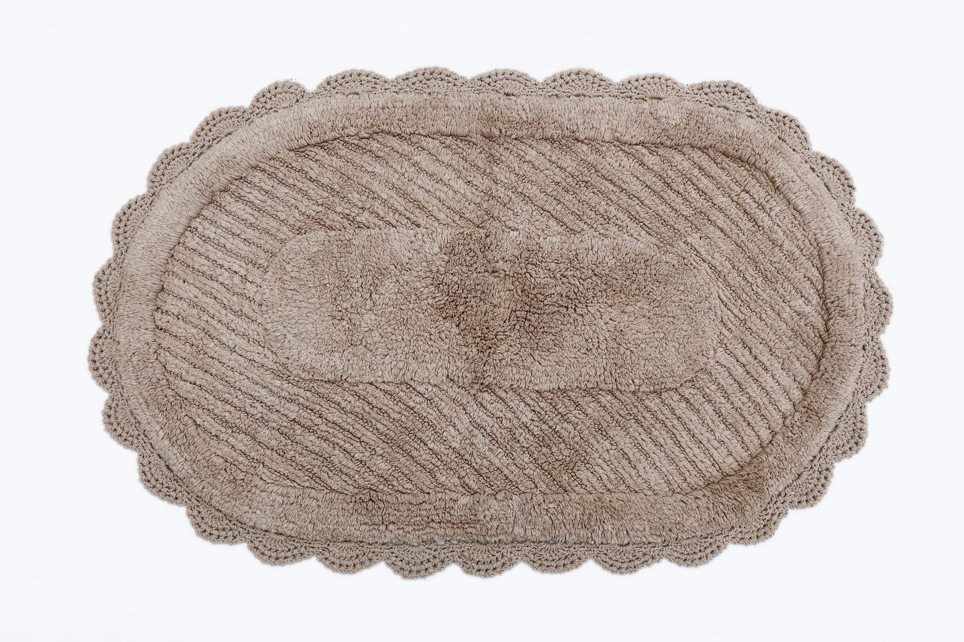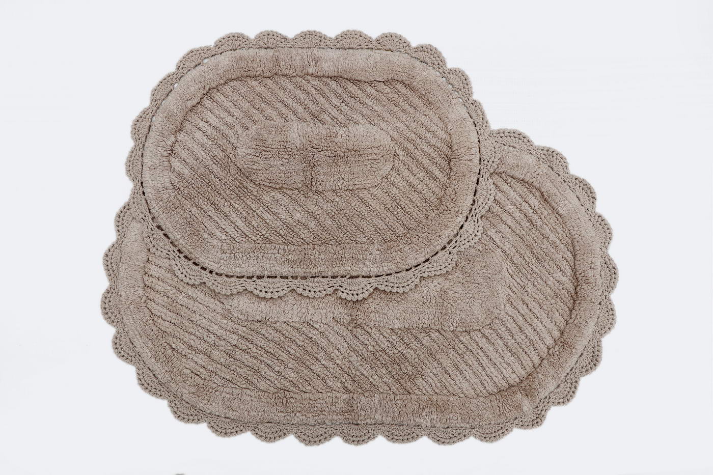 Материал: 100% хлопок, махра. Плотность, г/м2: 1800. Размеры, см: 60х100(1) и 50х70(1). Декор: кружево. Уход: стирка при 30°С. Изделие гипоаллергенно, без синтетических красителей, пропитки и обработки. Кружевные коврики для ванной комнаты из высококачественного 100% хлопка не только мгновенно впитывают влагу, они мягкие и приятные на ощупь, а цветовая палитра воссоздает природные оттенки. Коврики из натуральных материалов прекрасно подойдут для современных, классических, а также для интерьеров в стиле «прованс».