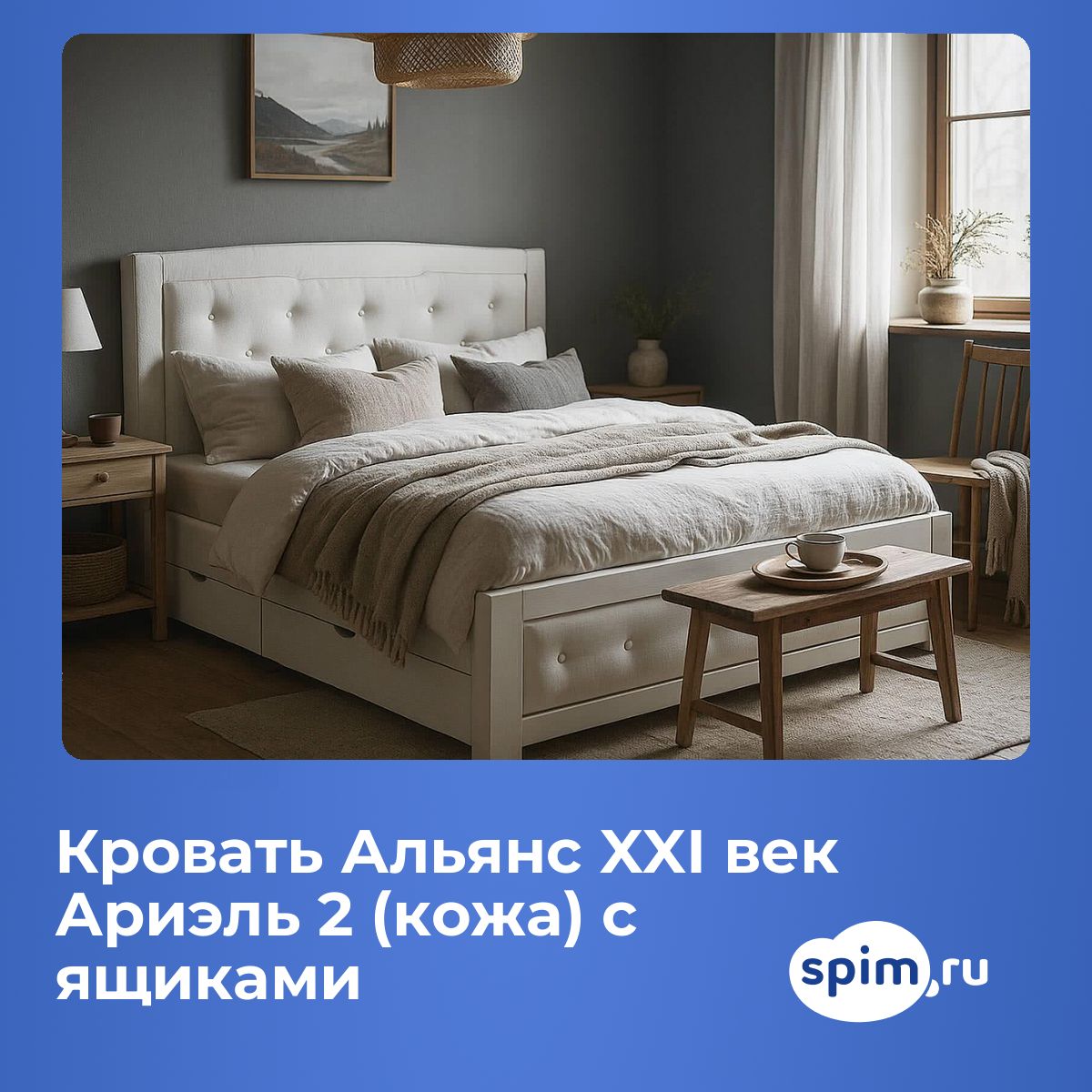 Кровать «Альянс XXI век Ариэль 2 (кожа) с ящиками» с обивкой или отделкой из кожи, экокожи или ткани — стильный элемент интерьера спальни.