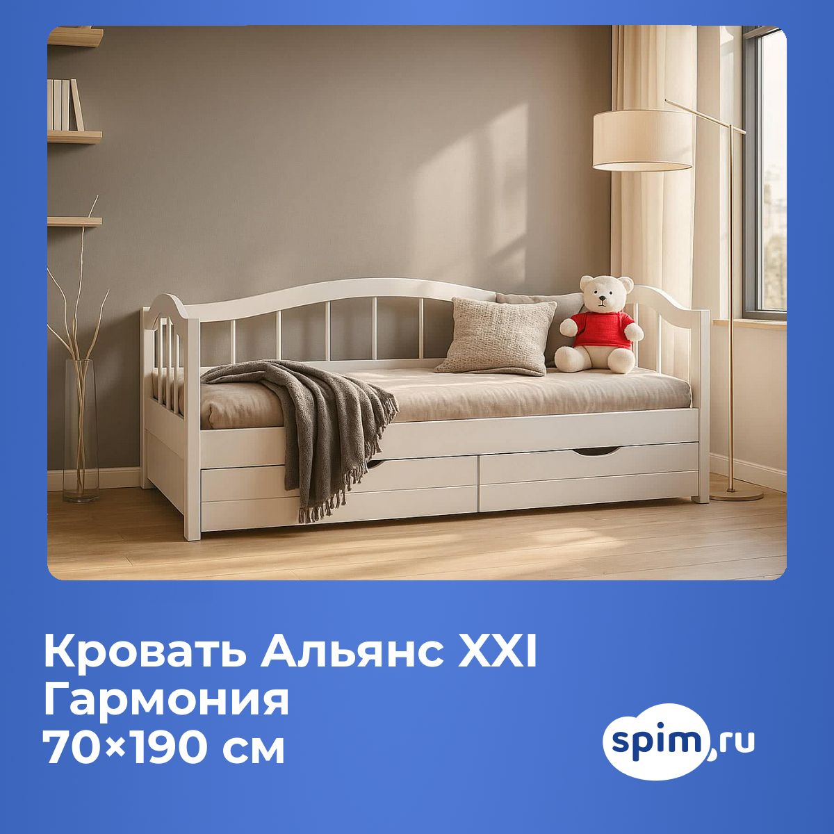 Кровать «Гармония» предоставляет дополнительное место для хранения в выдвижном ящике.