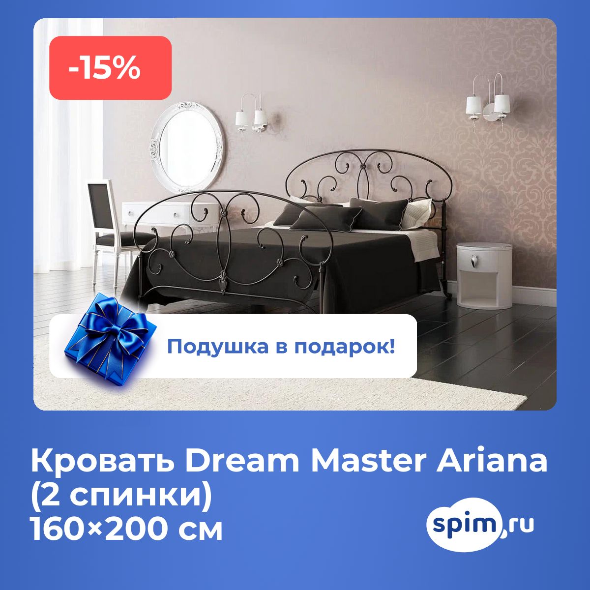 Металлическая кровать «Ariana (2 спинки)» — элегантное и надежное решение для спальни.