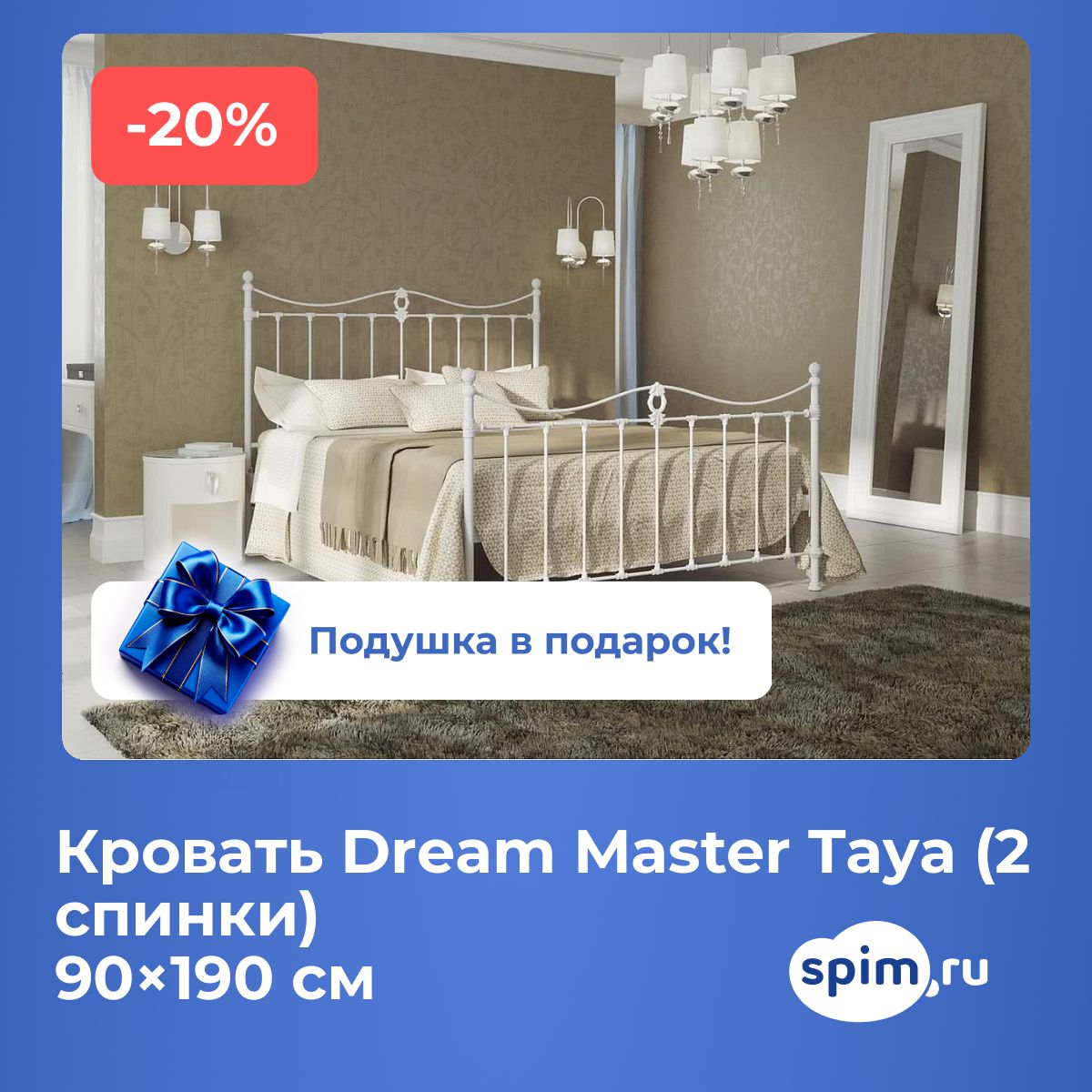 Металлическая кровать «Taya (2 спинки)» — стильный и надежный выбор для спальни.