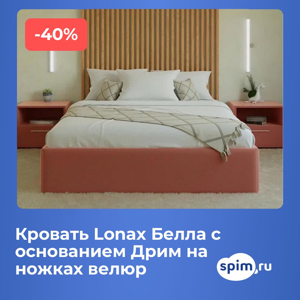 Кровать Lonax Белла с основанием Дрим на ножках велюрАртикул С-124825