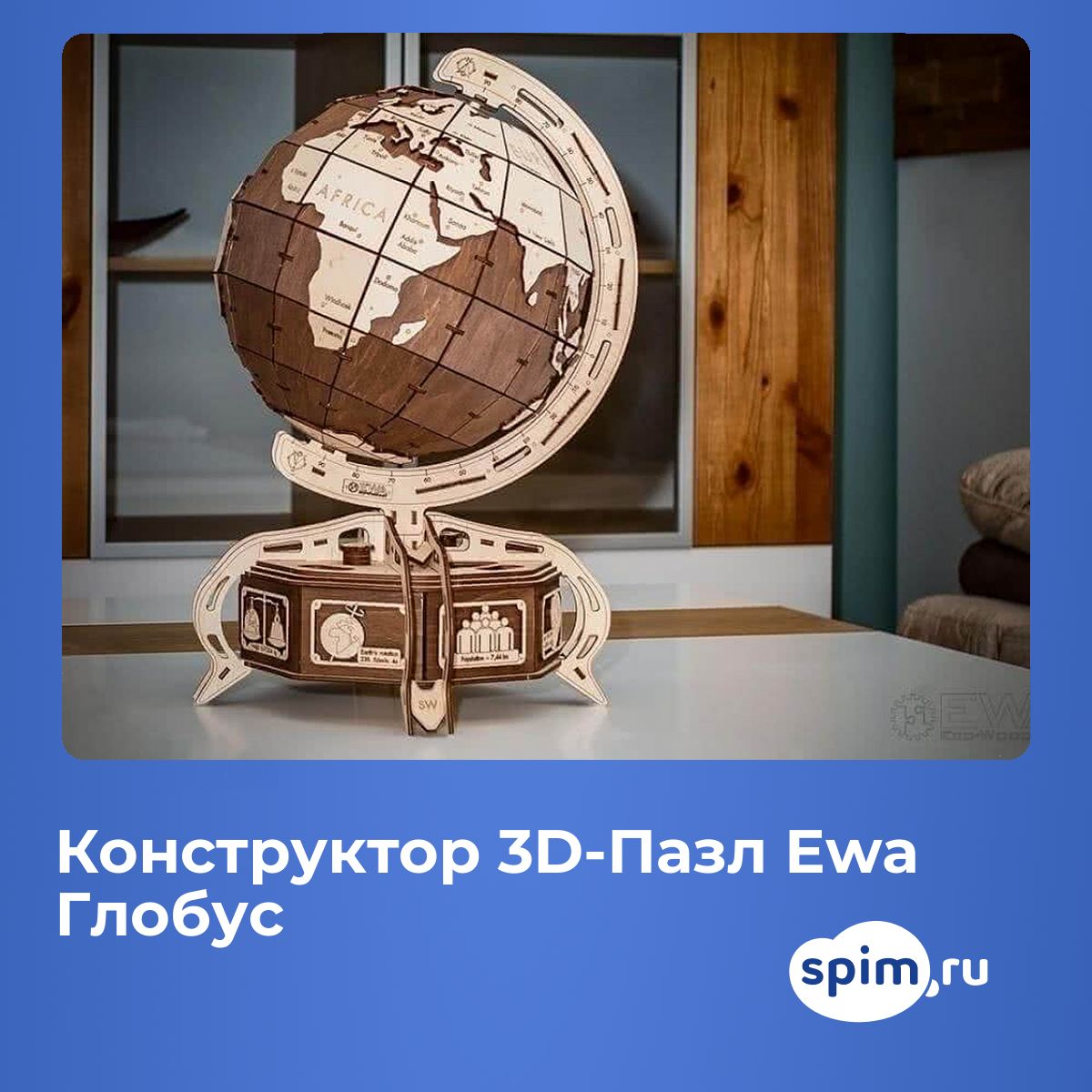 Глобус EWA — образовательная 3D модель Земли для самостоятельной сборки. Дает общее представление о расположении материков и океанов, предоставляет замечательную возможность смотреть, выбирать и показывать значимые места на планете. Идеальная модель для дома и офиса из экологически чистых материалов.