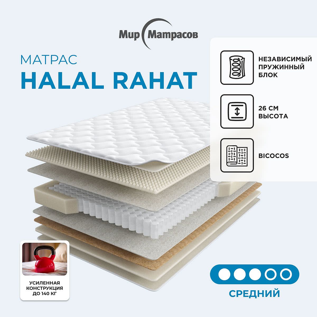 Матрас «Мир матрасов Rahat» — средней жесткости, которая комфортна большинству людей среднего телосложения. Это — оптимальный выбор и детям, и взрослым, и пожилым людям.