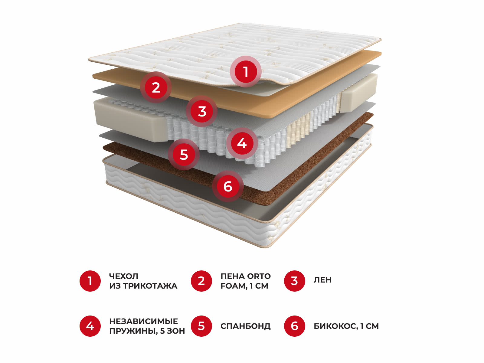 Независимый пружинный блок, 400 пружин/м2, 5 зон жесткости