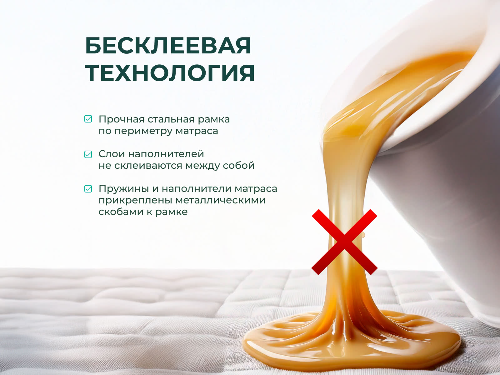 Этот матрас собран без применения клея. Поэтому какие-либо неприятные запахи от нового матраса полностью исключены.