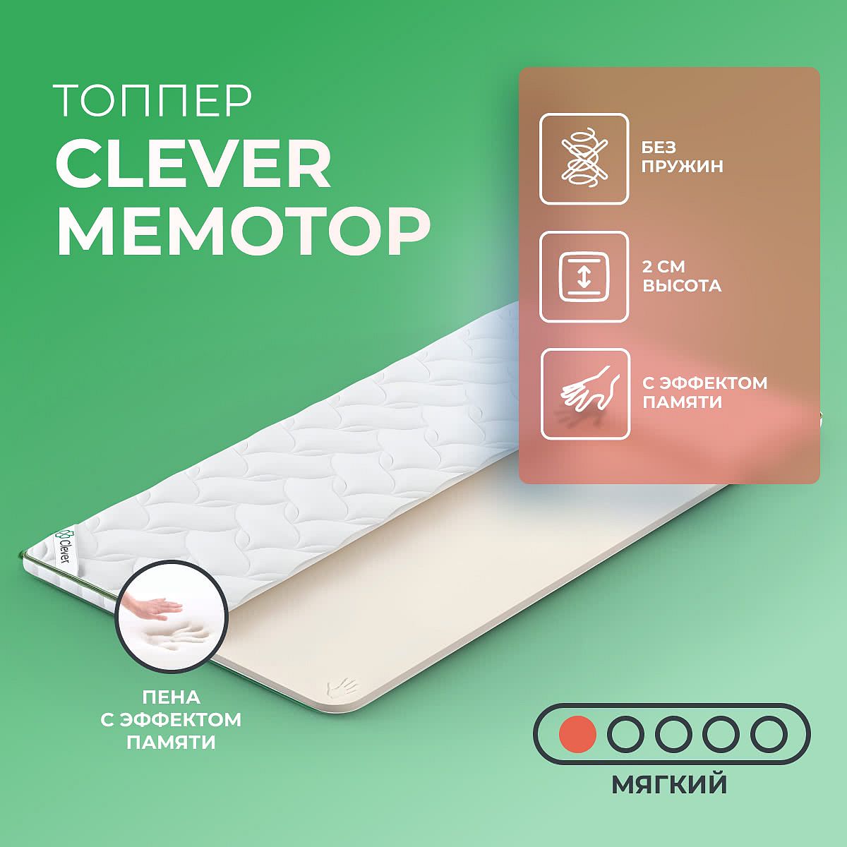 Мягкий матрас «Clever MemoTop» отлично подойдет человеку с небольшим весом, предпочитающему высокий уровень комфорта.