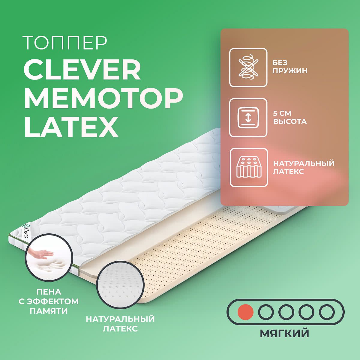 Мягкий матрас «Clever MemoTop Latex» отлично подойдет человеку с небольшим весом, ценителю комфорта.