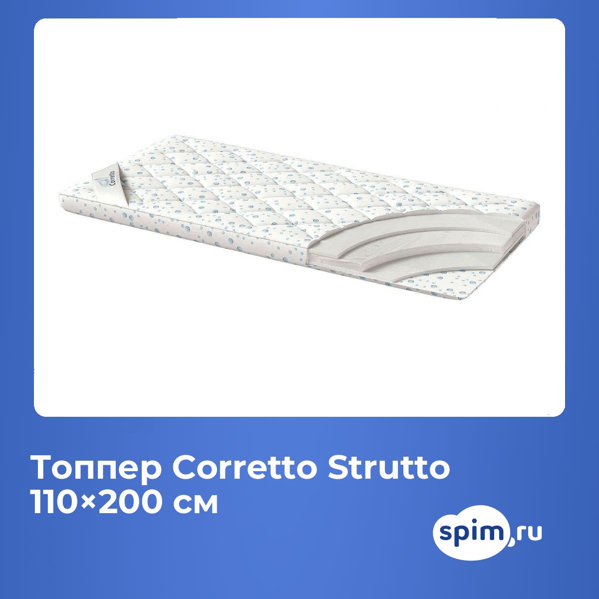 Полутораспальный топпер Corretto Strutto 110х200 подойдет для кроватей с размерами спального места, обозначенными как 110x200 см, 1100х2000 мм, 200х110 см, 2000х1100 мм (ширина 110 см, длина 200 см).
