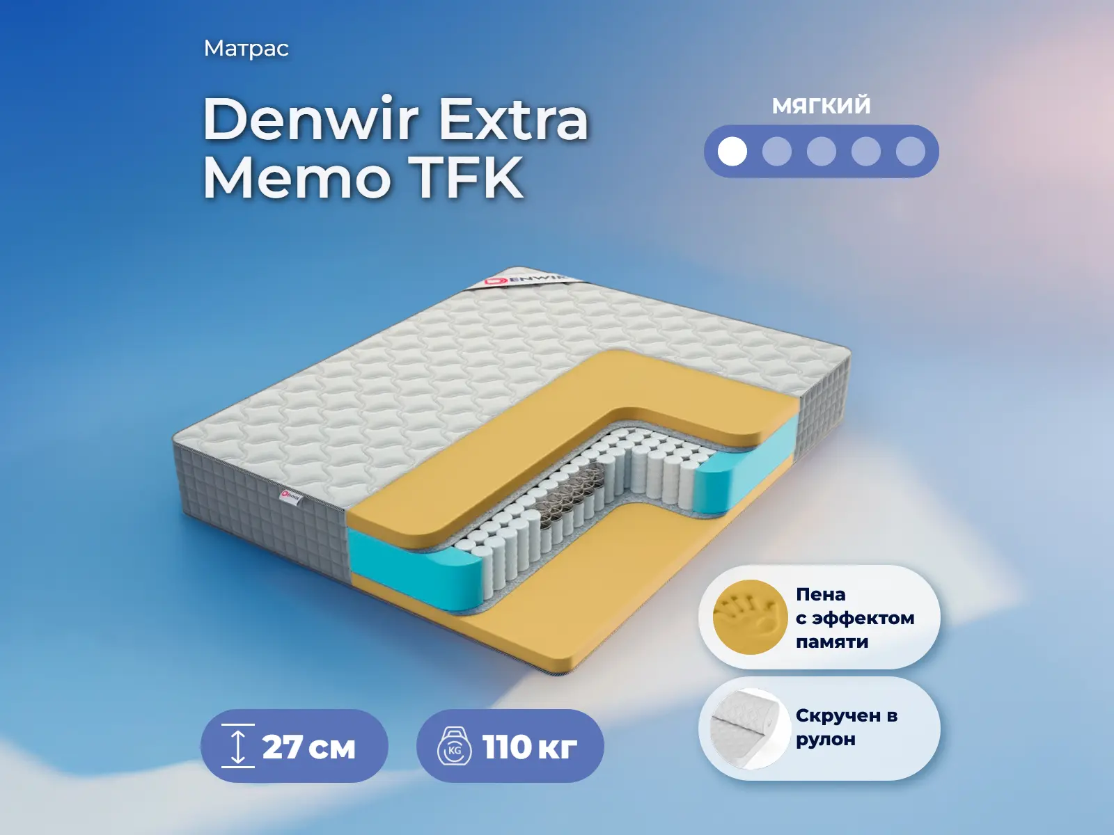 Мягкий матрас «Denwir Extra Memo TFK» отлично подойдет человеку с небольшим весом, предпочитающему высокий уровень комфорта.