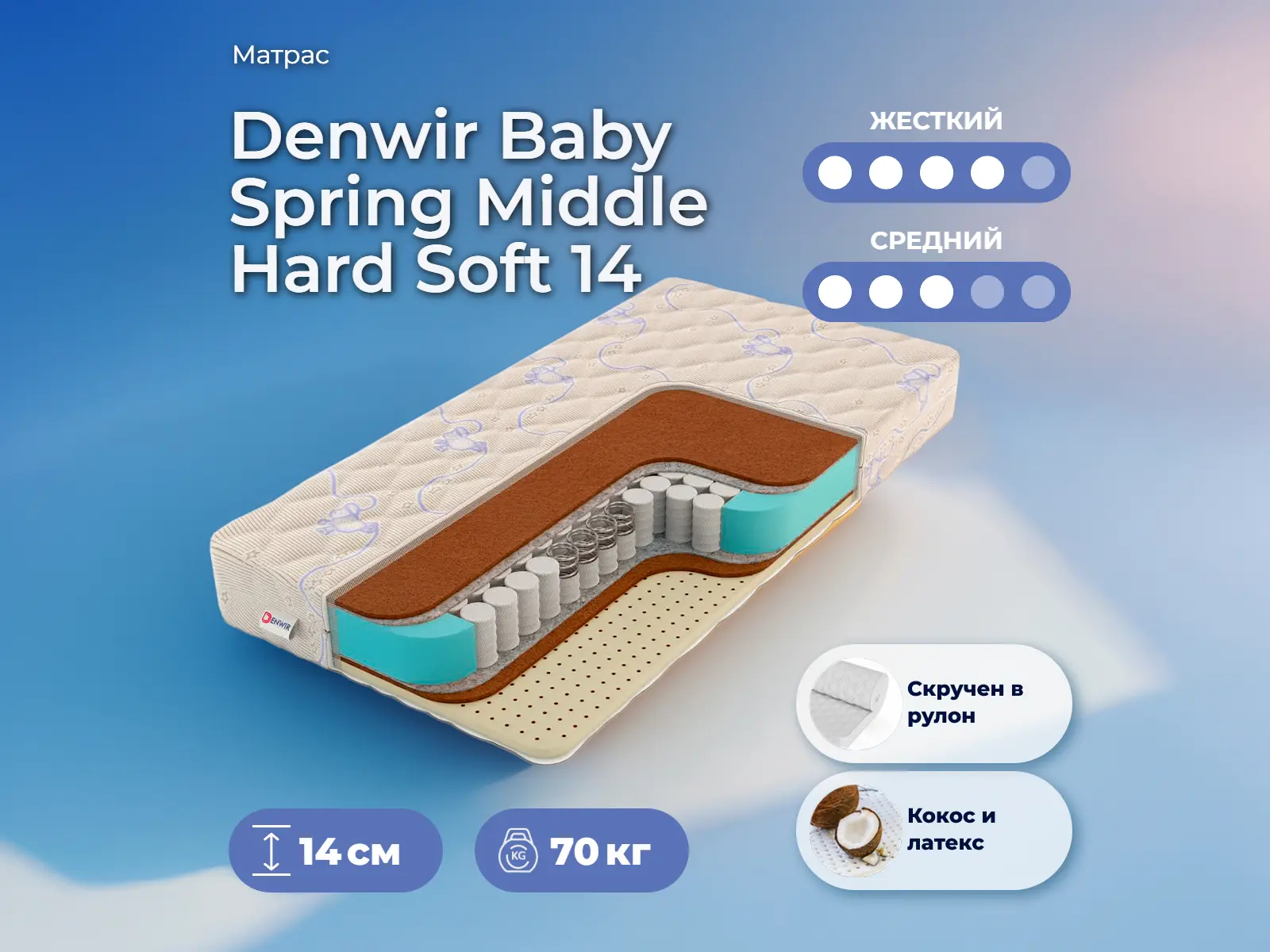 Детский матрас Denwir Baby Spring Middle Hard Soft 14Артикул С-114265