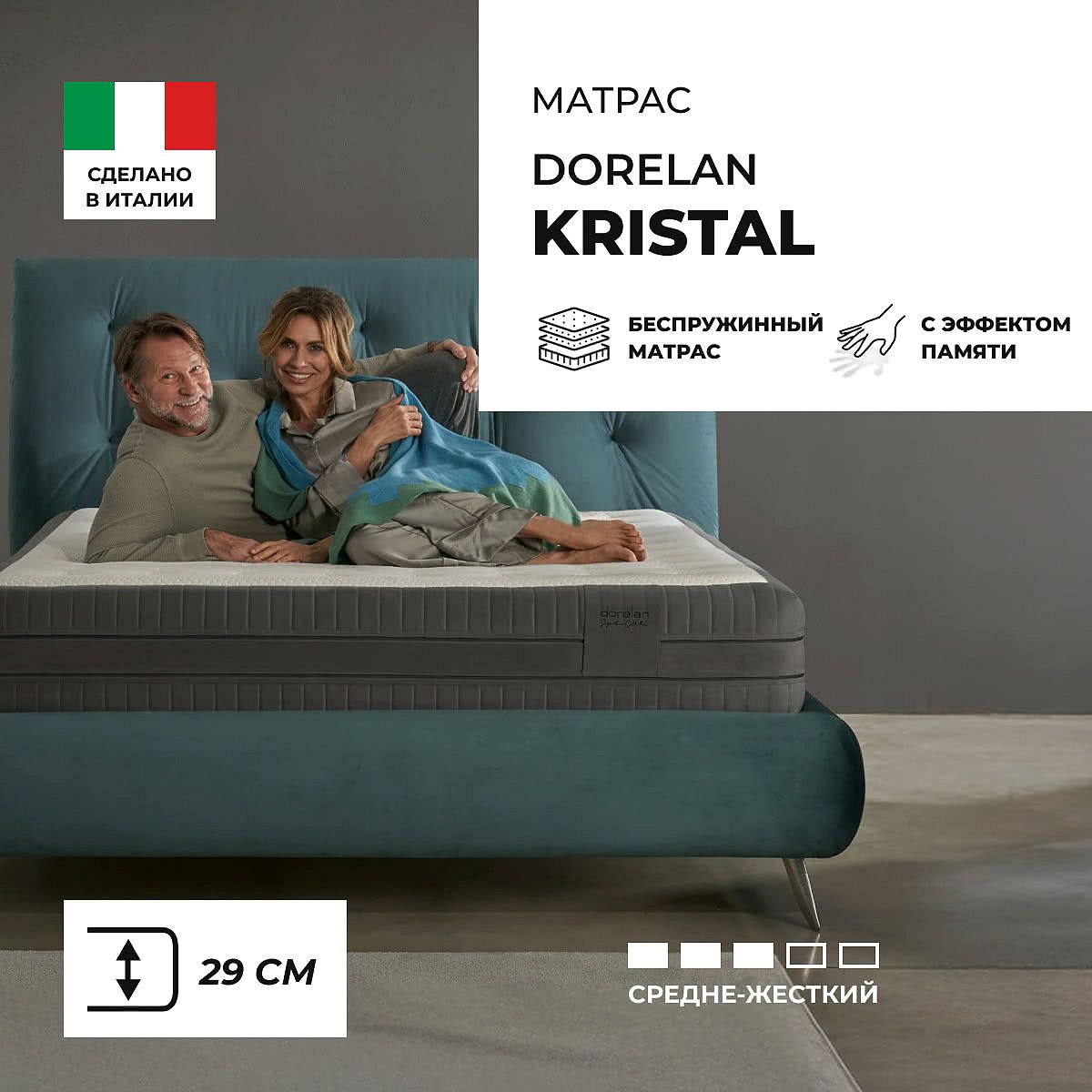 Матрас «Dorelan Kristal» — средней жесткости, которая подходит большинству людей среднего телосложения. Это — универсальный вариант и детям, и взрослым, и пожилым людям.