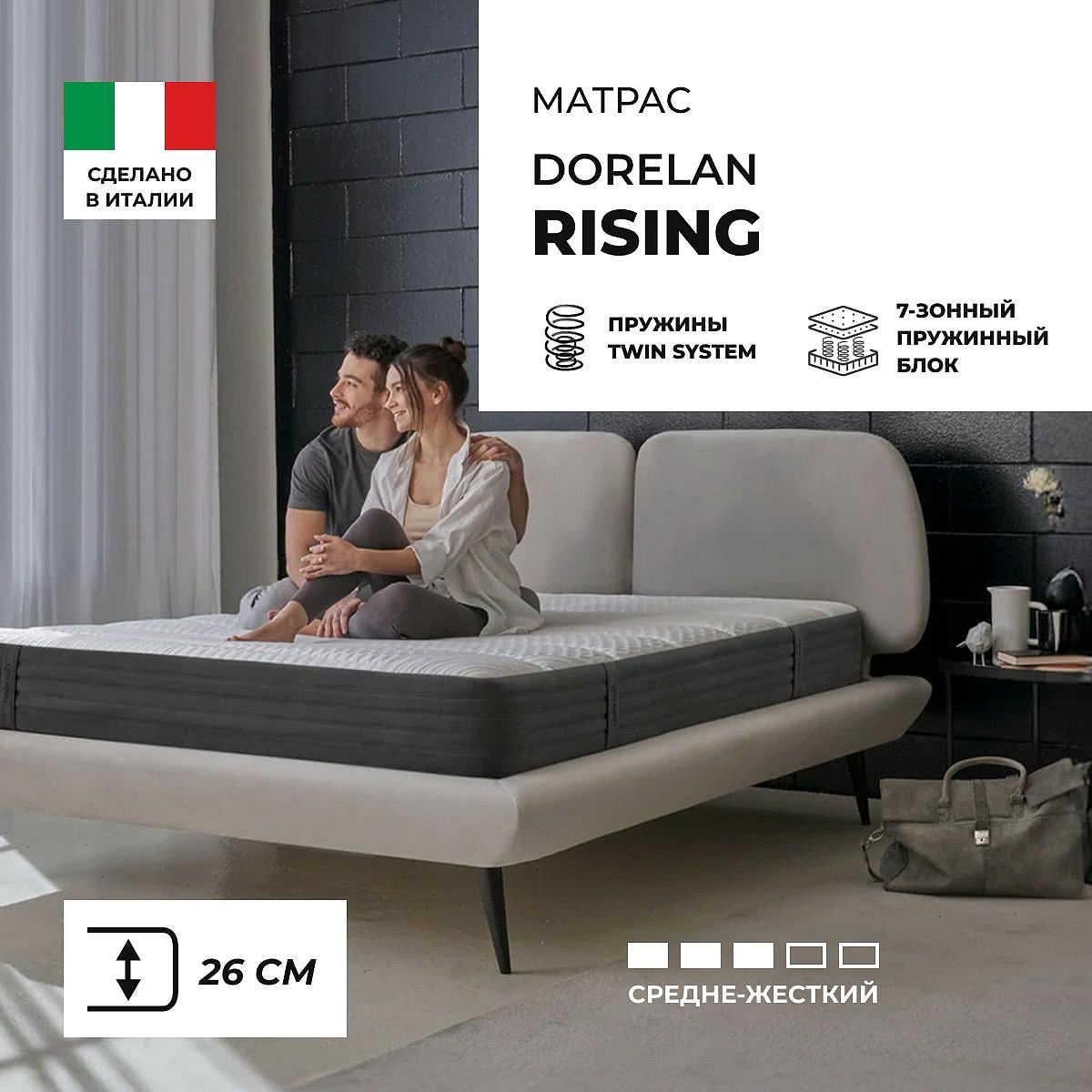 Матрас «Dorelan Rising» — средней жесткости, которая подходит большинству людей среднего телосложения. Это — оптимальный выбор и детям, и взрослым, и пожилым людям.