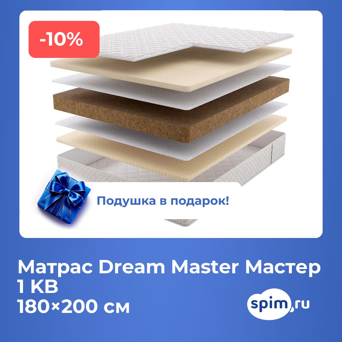 При покупке любого матраса, кроме моделей из серий "Топпер", вы получите в подарок:
