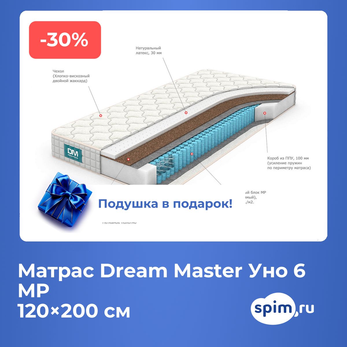 При покупке любого матраса, кроме моделей из серий "Топпер", вы получите в подарок: