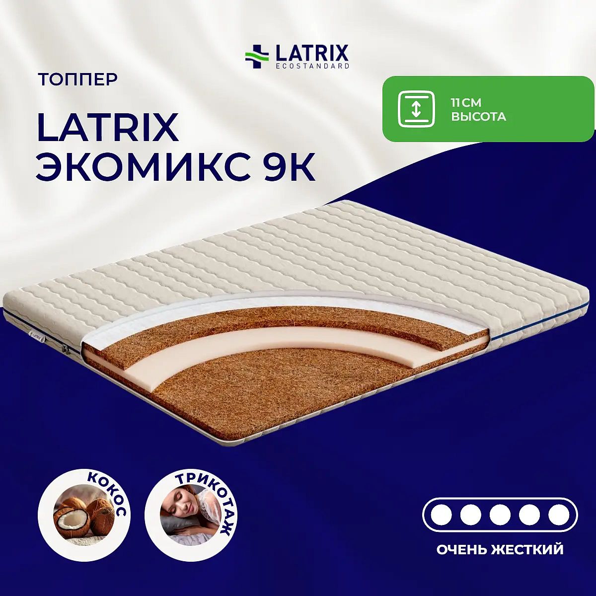 Матрас экстремальной жесткости «Latrix Экомикс 9К» — для любителей спать буквально «на доске» или для новорожденных.