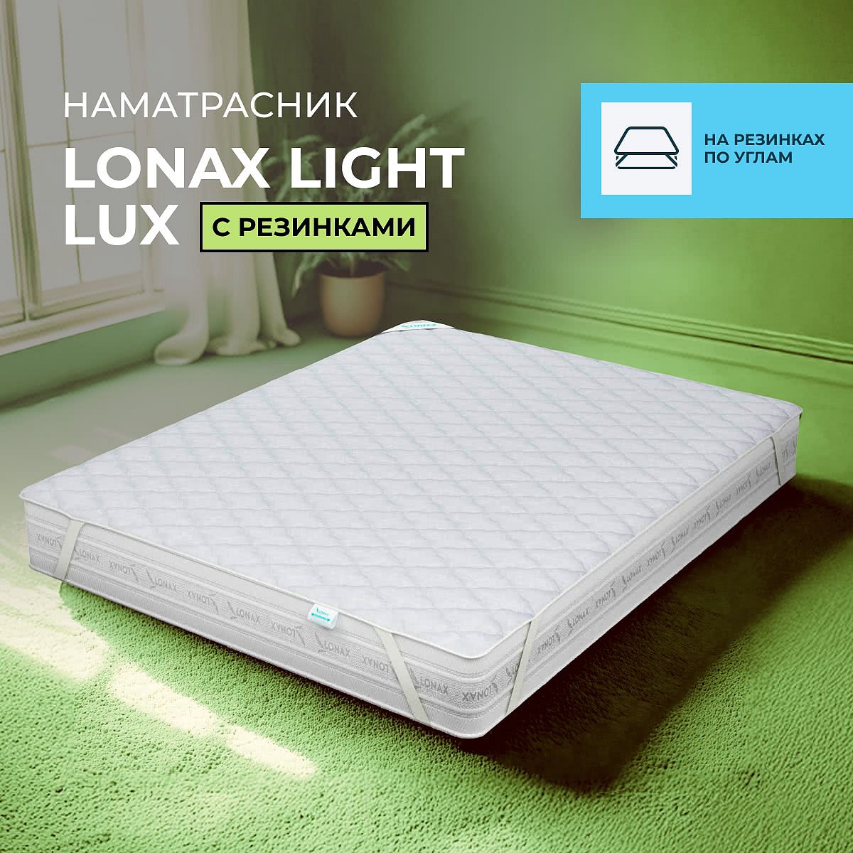 Вы можете купить наматрасник Lonax Light Lux с резинками и в других размерах: 200х190 см, 180х195 см.