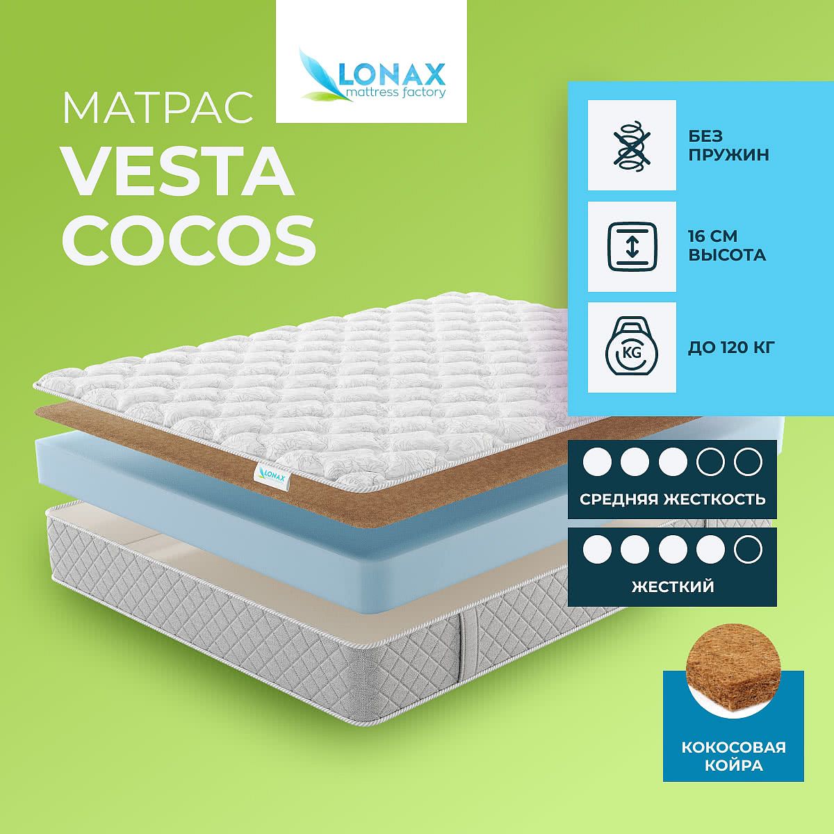 Матрас Lonax Vesta Cocos 120х200 смАртикул С-134708