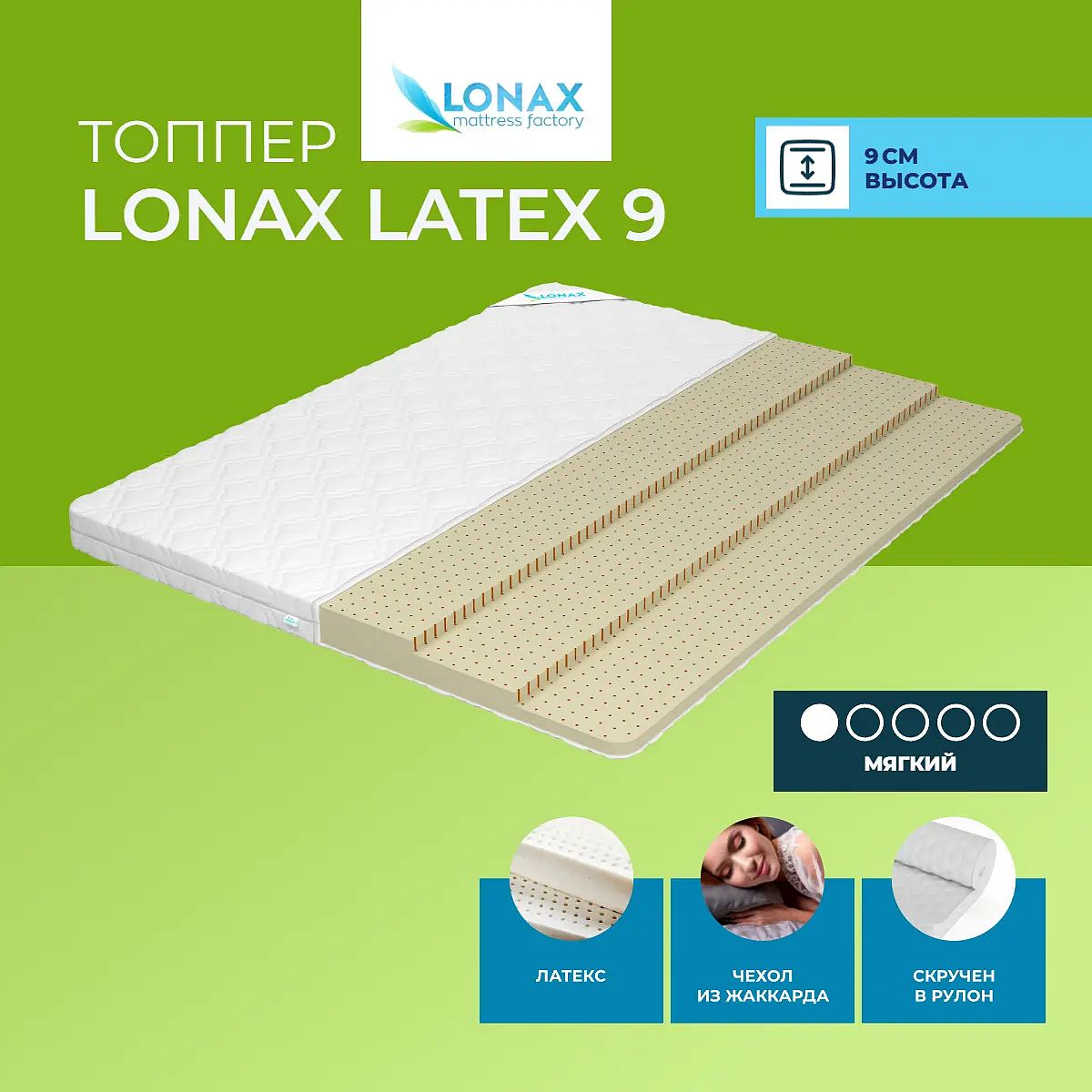 Мягкий матрас «Lonax Latex 9» отлично подойдет человеку с небольшим весом, ценителю комфорта.