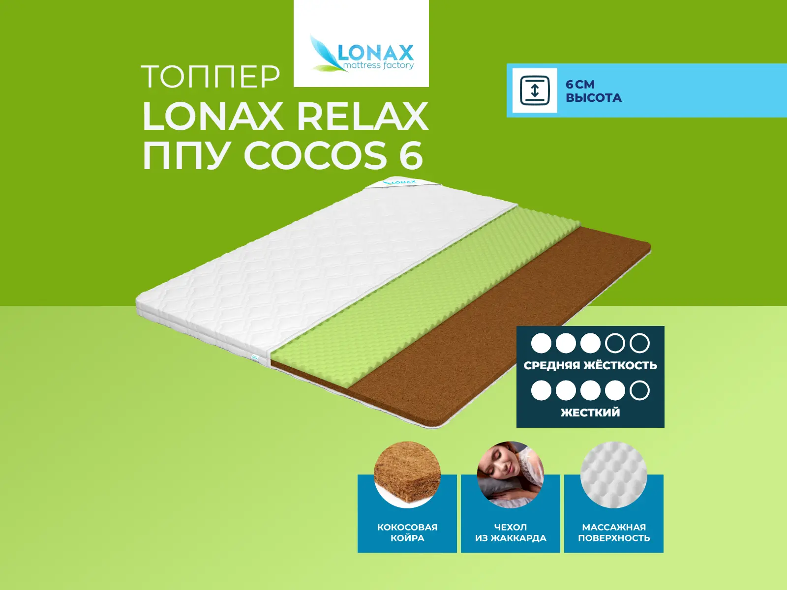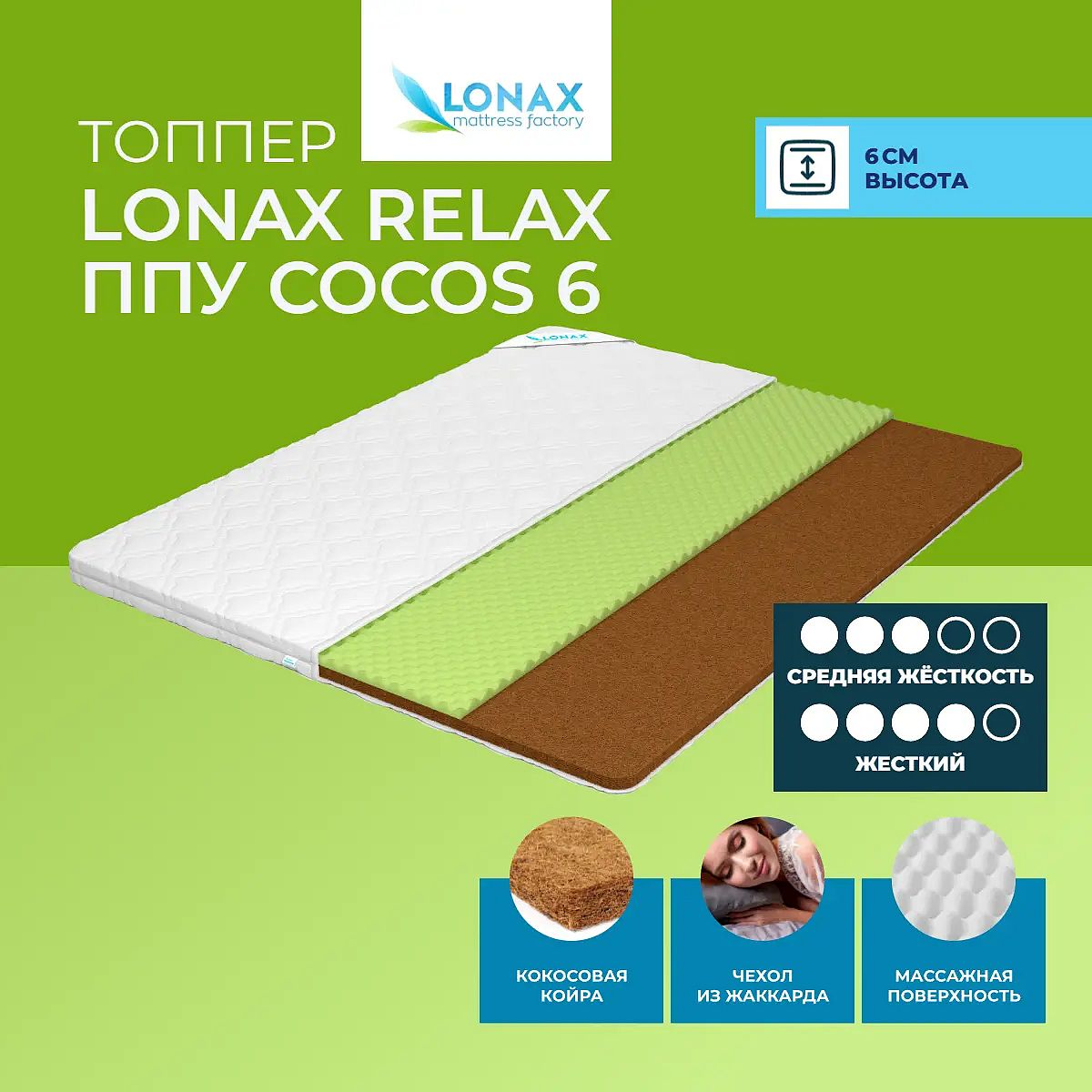 Топпер Lonax Relax ППУ Cocos 6 80х190 смАртикул С-92924