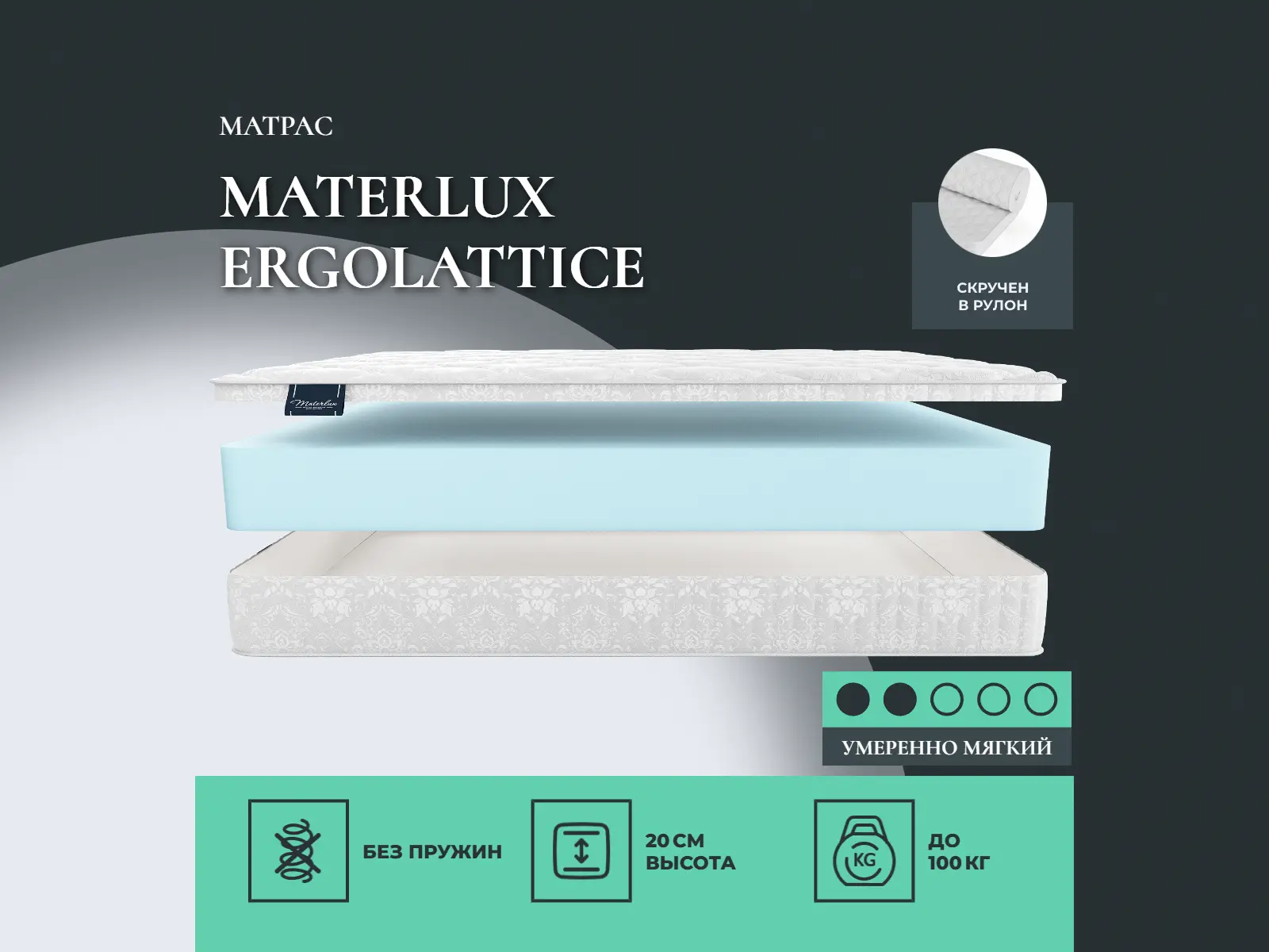 Средне-мягкий матрас «Materlux Ergolattice» — для настоящего ценителя комфорта. Такой вариант хорошо подойдет людям с небольшим весом.