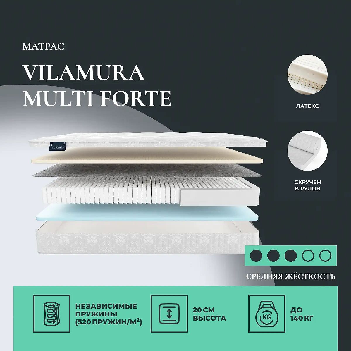 Матрас «Materlux Vilamura Multi Forte» — средней жесткости, которая подходит большинству людей среднего телосложения. Это — оптимальный выбор и детям, и взрослым, и пожилым людям.