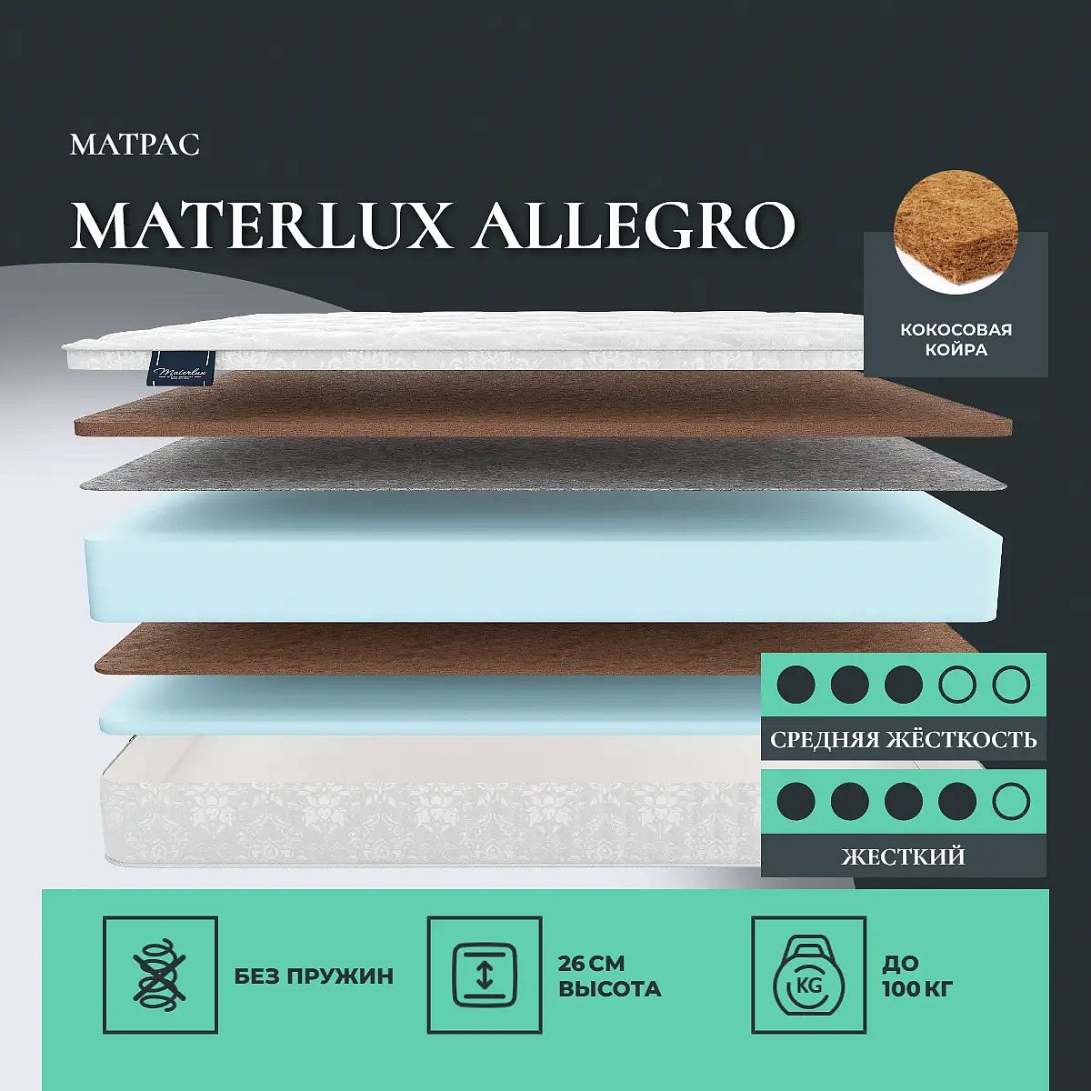 Преимущество матраса Allegro — он имеет 2 различные по жесткости стороны: средне-жесткую и жесткую.