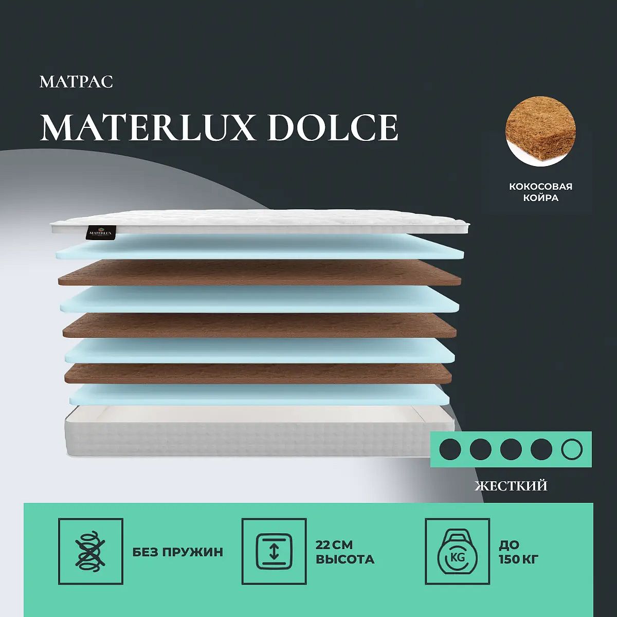 Матрас высокой жесткости «Materlux Dolce» — оптимальный выбор для уверенной поддержки позвоночника. Именно такие модели обычно рекомендуют подросткам, спортсменам или людям с проблемами позвоночника.