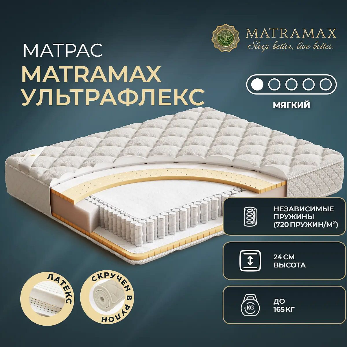 Мягкий матрас «Matramax Ультрафлекс» отлично подойдет человеку с небольшим весом, предпочитающему высокий уровень комфорта.