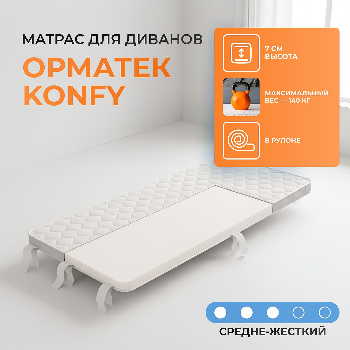 Матрас «Орматек Konfy» — средней жесткости, которая подходит большинству людей среднего телосложения. Это — универсальный выбор и детям, и взрослым, и пожилым людям.