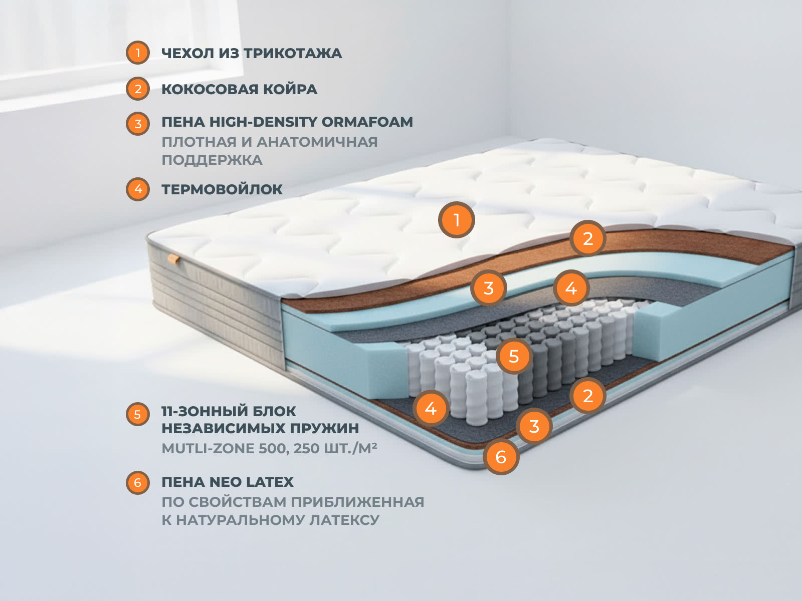 Независимый пружинный блок, 250 пружин/м2, 11 зон жесткости