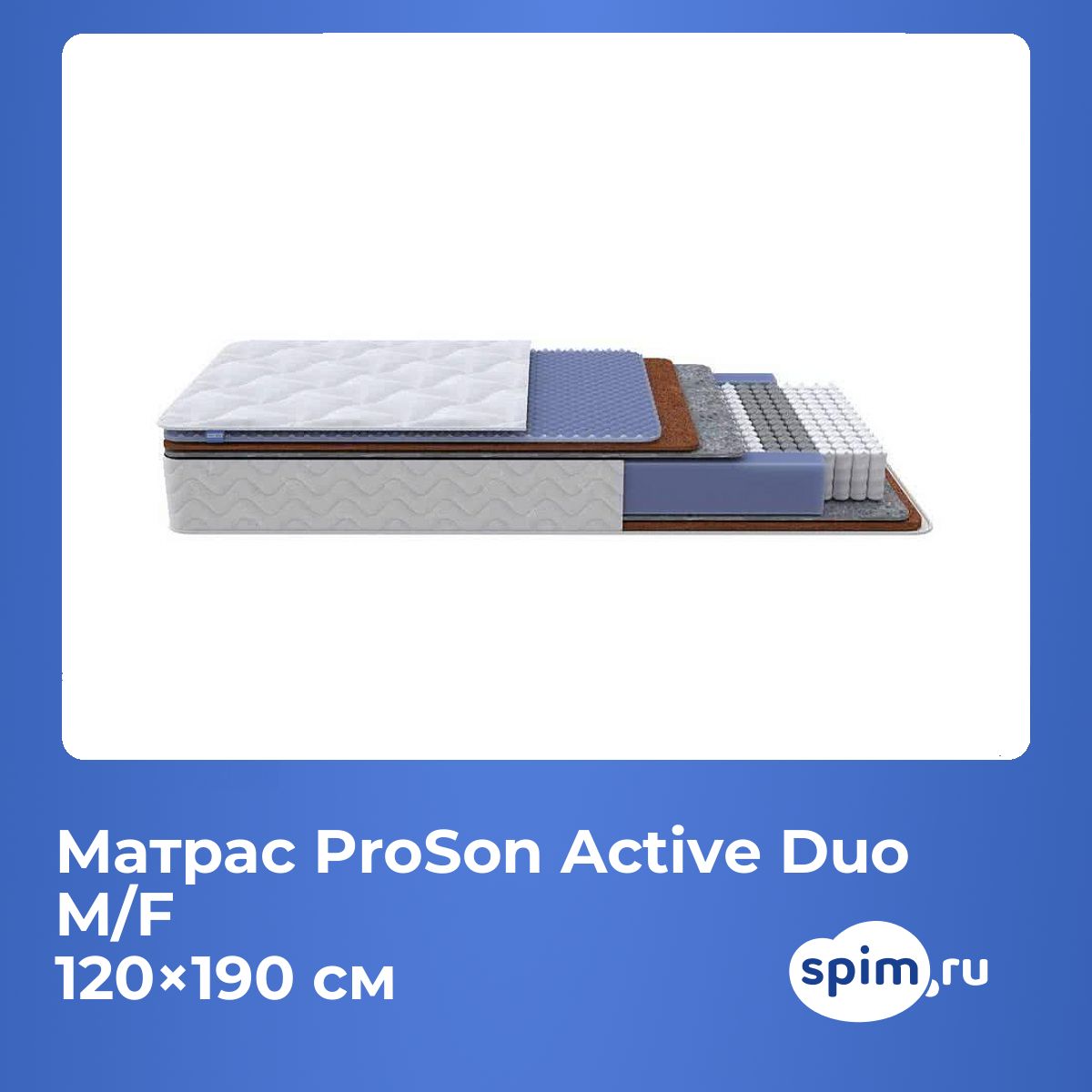 Полутораспальный матрас ProSon Active Duo M/F 120х190 подойдет для кроватей с размерами спального места, обозначенными как 120x190 см, 1200х1900 мм, 190х120 см, 1900х1200 мм (ширина 120 см, длина 190 см).