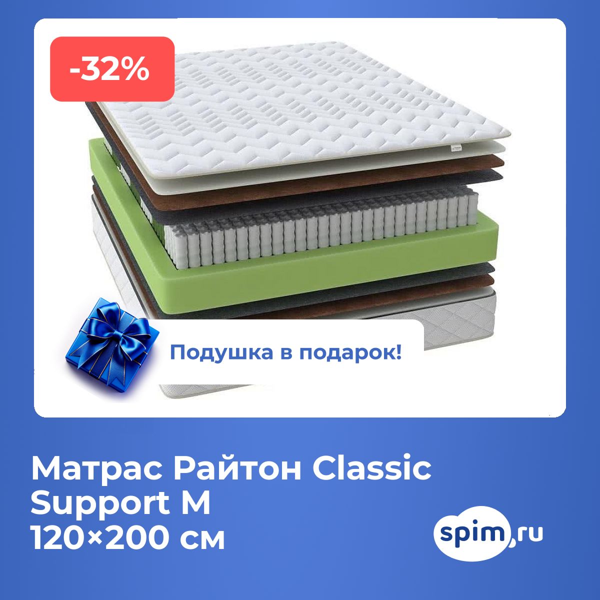 Подушка Орма Sleep в подарок при покупке матраса стоимостью от 15,000 рублей.