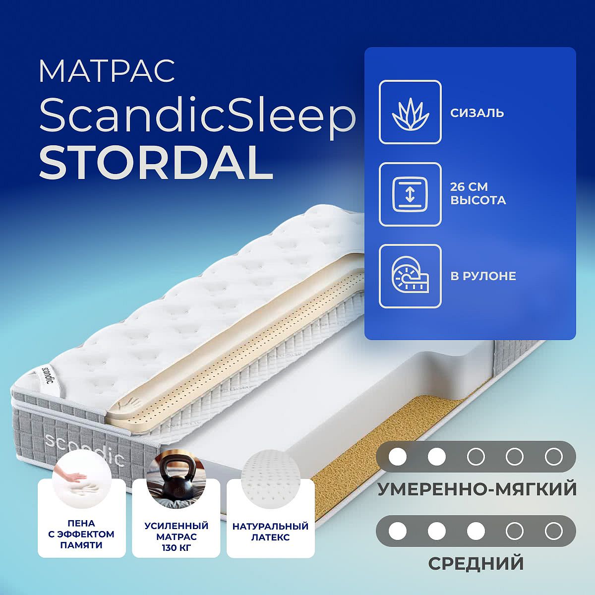 Преимущество матраса Stordal — он имеет 2 различные по жесткости стороны: средне-мягкую и средне-жесткую.