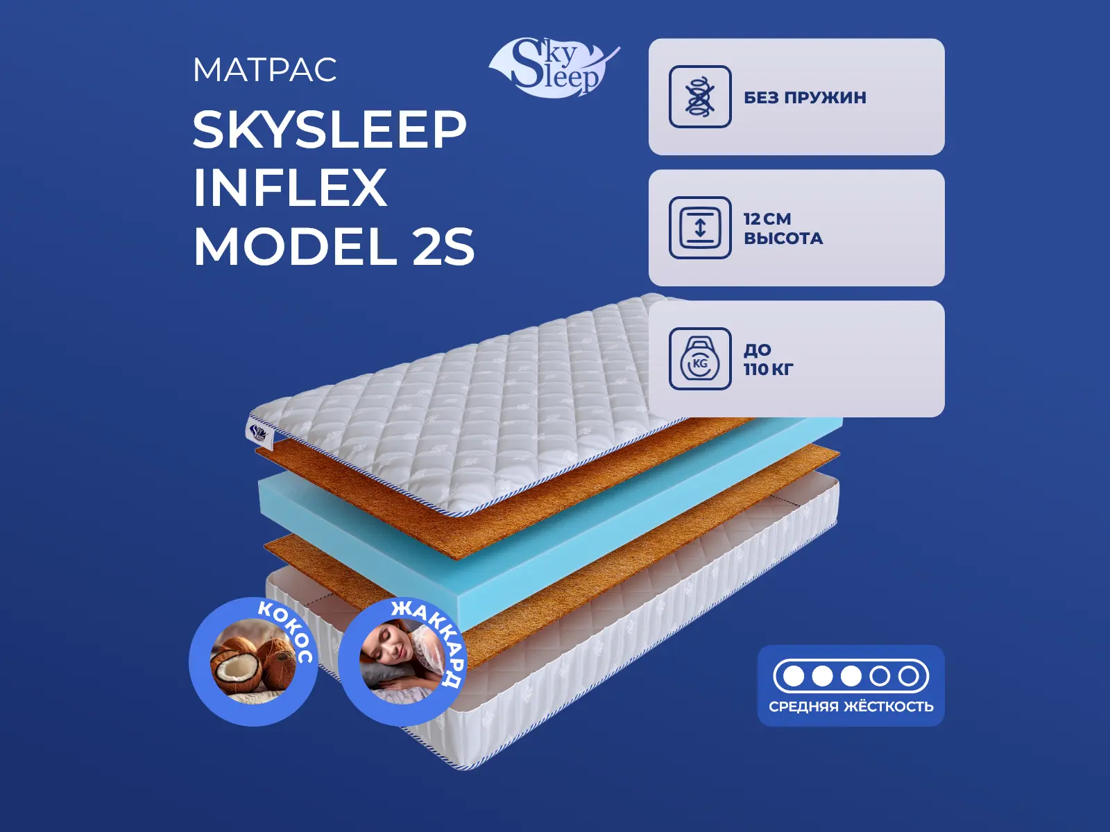 Матрас «SkySleep InFlex Model 2s» — средней жесткости, которая комфортна большинству людей среднего телосложения. Это — оптимальный выбор и детям, и взрослым, и пожилым людям.