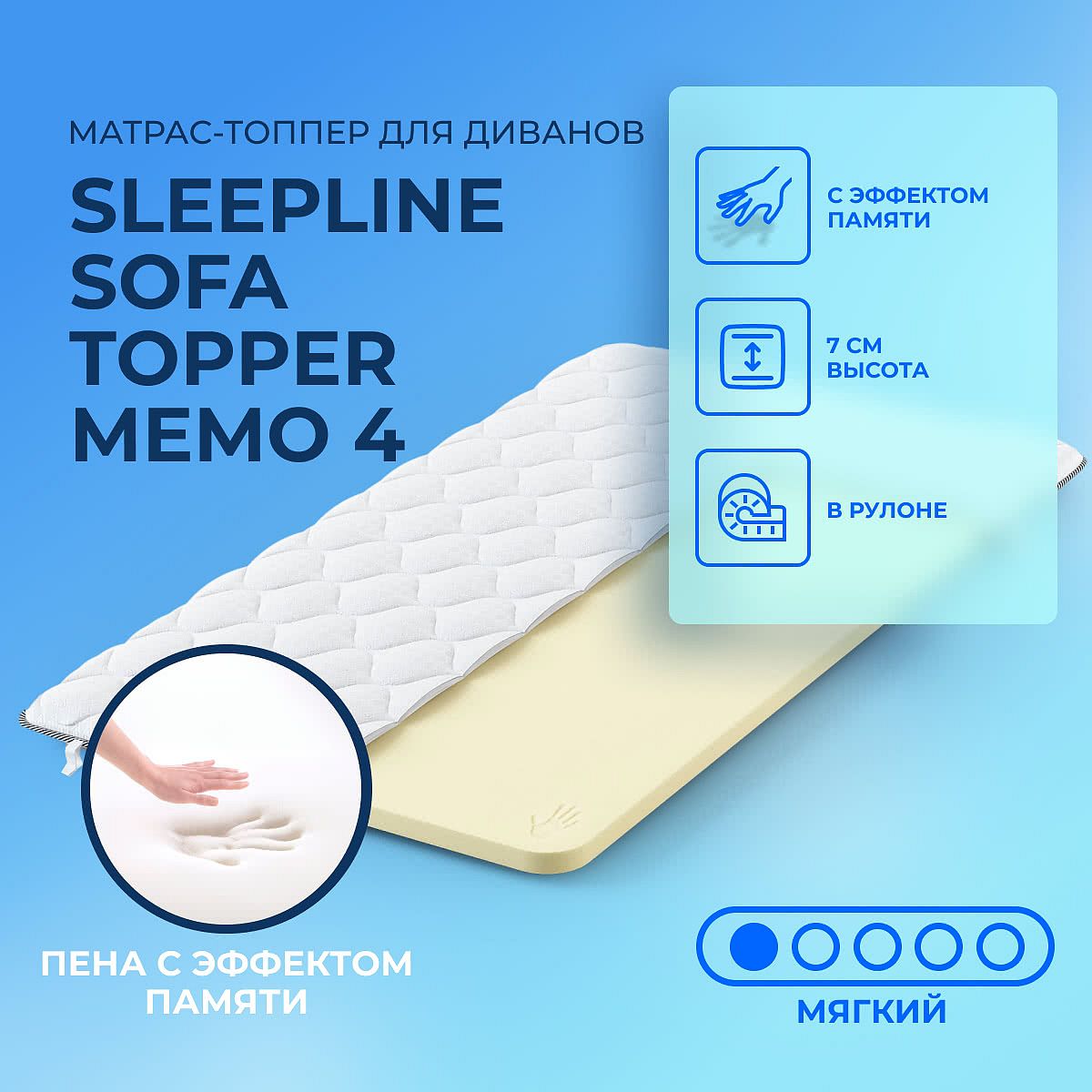 Мягкий матрас «Sleepline Sofa Topper Memo 4» отлично подойдет человеку с небольшим весом, ценителю комфорта.
