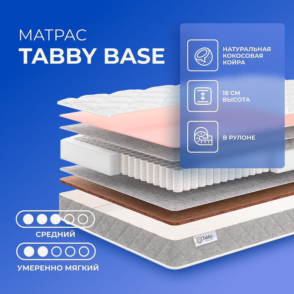 Преимущество матраса Tabby Base — он имеет 2 различные по жесткости стороны: средне-мягкую и средне-жесткую.