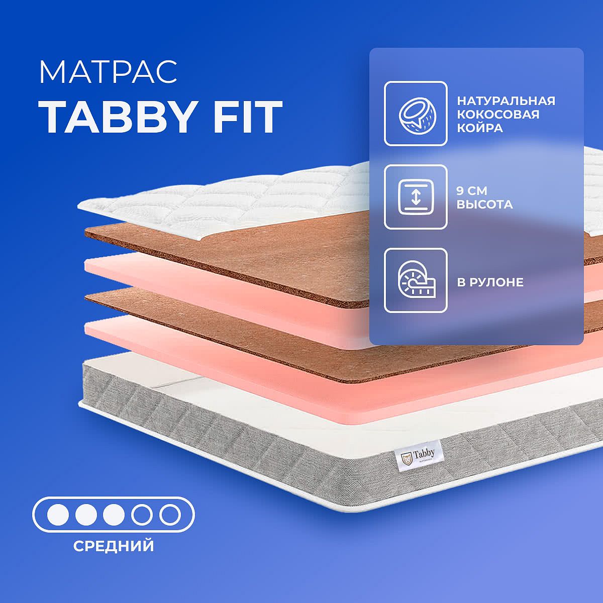 Матрас «Tabby Tabby Fit» — средней жесткости, которая комфортна большинству людей среднего телосложения. Это — оптимальный выбор и детям, и взрослым, и пожилым людям.