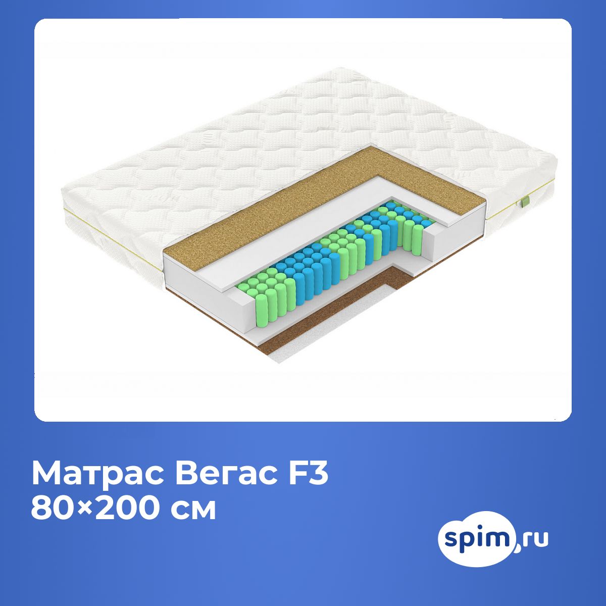 Односпальный матрас Вегас F3 80х200 подойдет для кроватей с размерами спального места, обозначенными как 80x200 см, 800х2000 мм, 200х80 см, 2000х800 мм (ширина 80 см, длина 200 см).