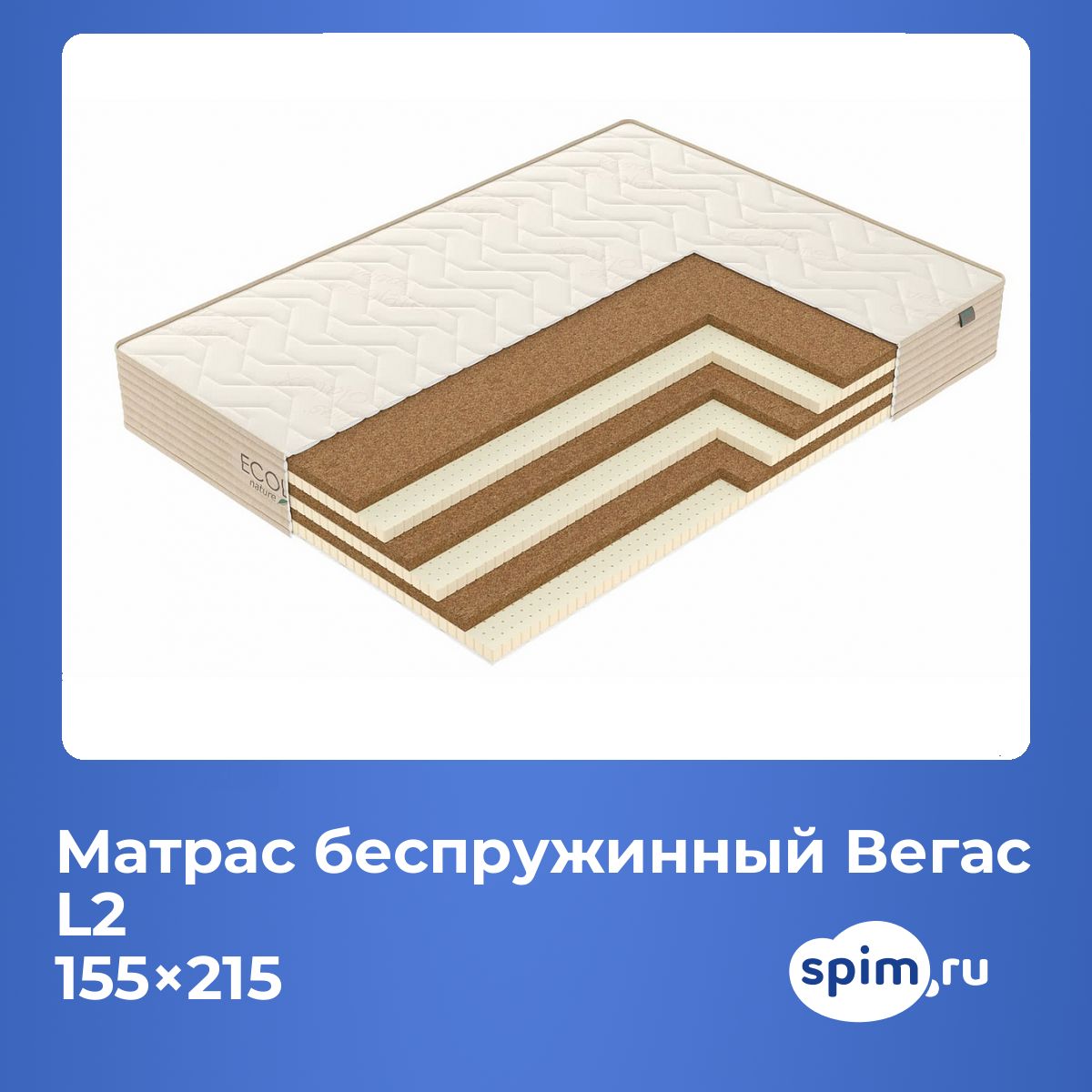 Кокос — натуральный материал, койра отлично дышит, придает матрасу «L2» жесткость и упругость.