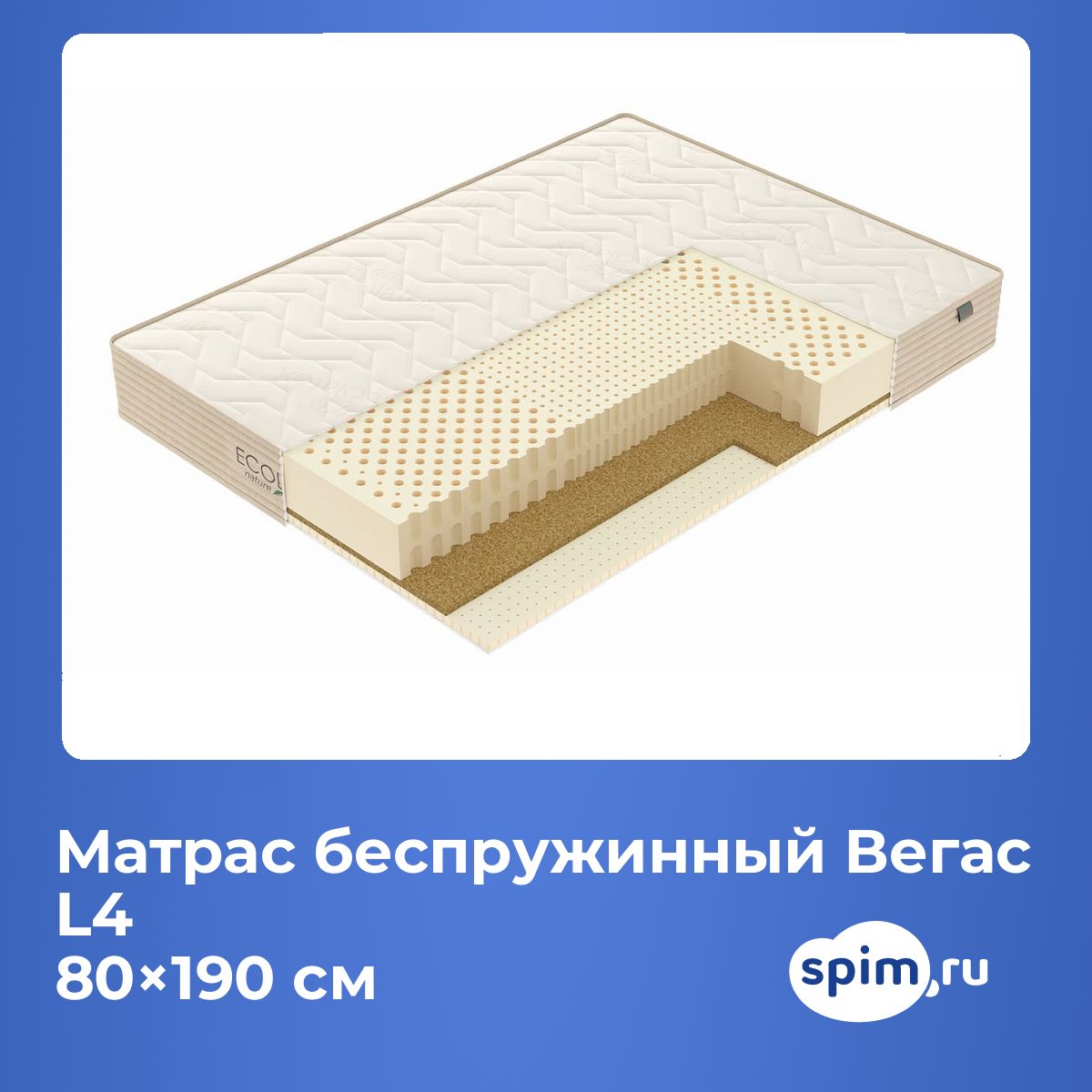 Матрас L4 имеет среднюю толщину и подходит к большинству типов кроватей.