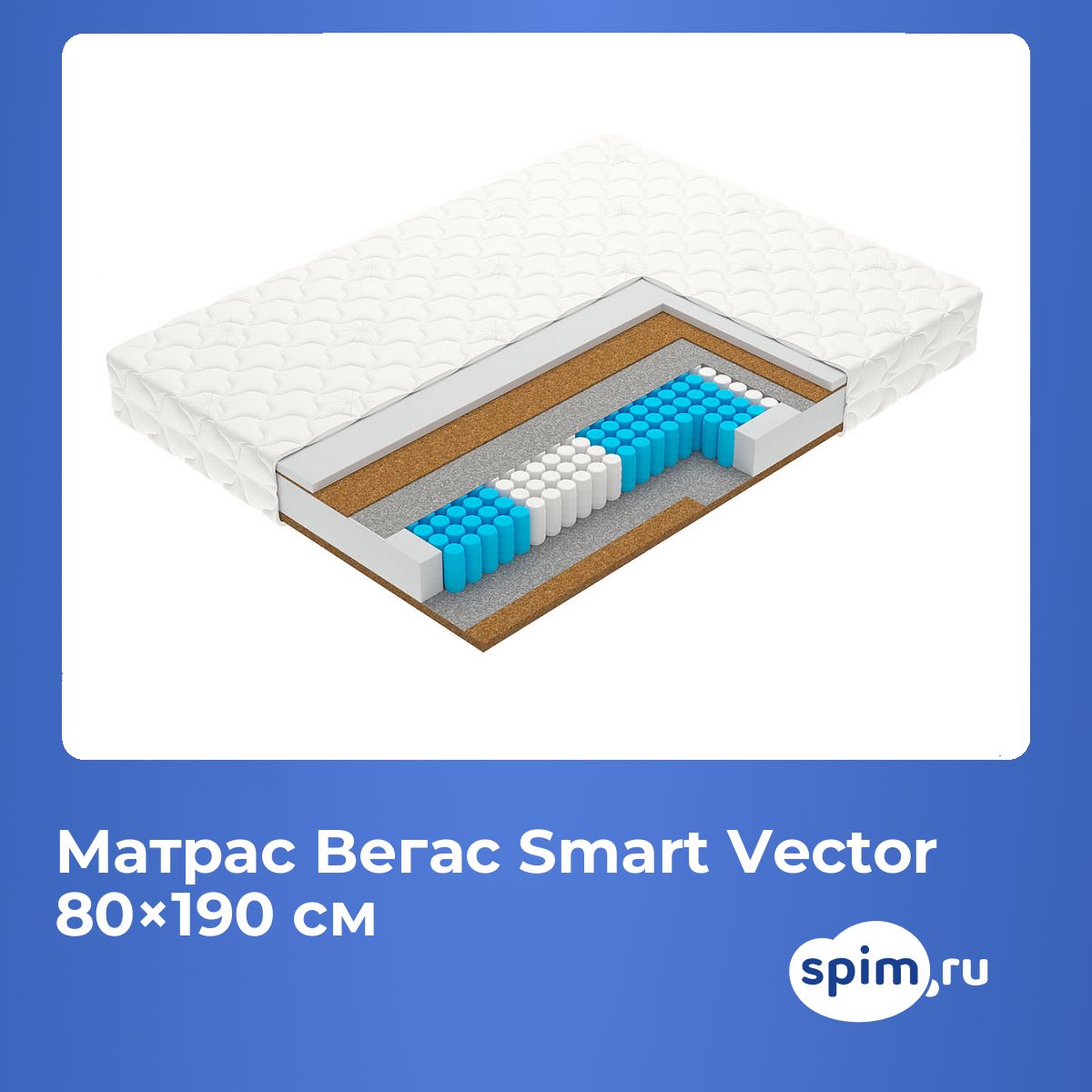 Односпальный матрас Вегас Smart Vector 80х190 подойдет для кроватей с размерами спального места, обозначенными как 80x190 см, 800х1900 мм, 190х80 см, 1900х800 мм (ширина 80 см, длина 190 см).