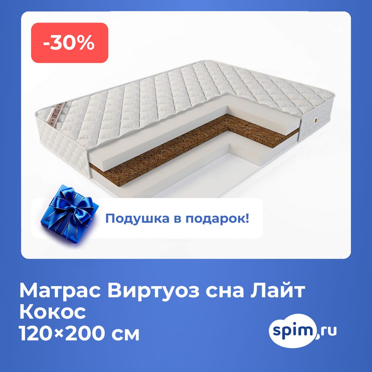 Матрас Виртуоз сна Лайт Кокос 120х200 смАртикул С-15199