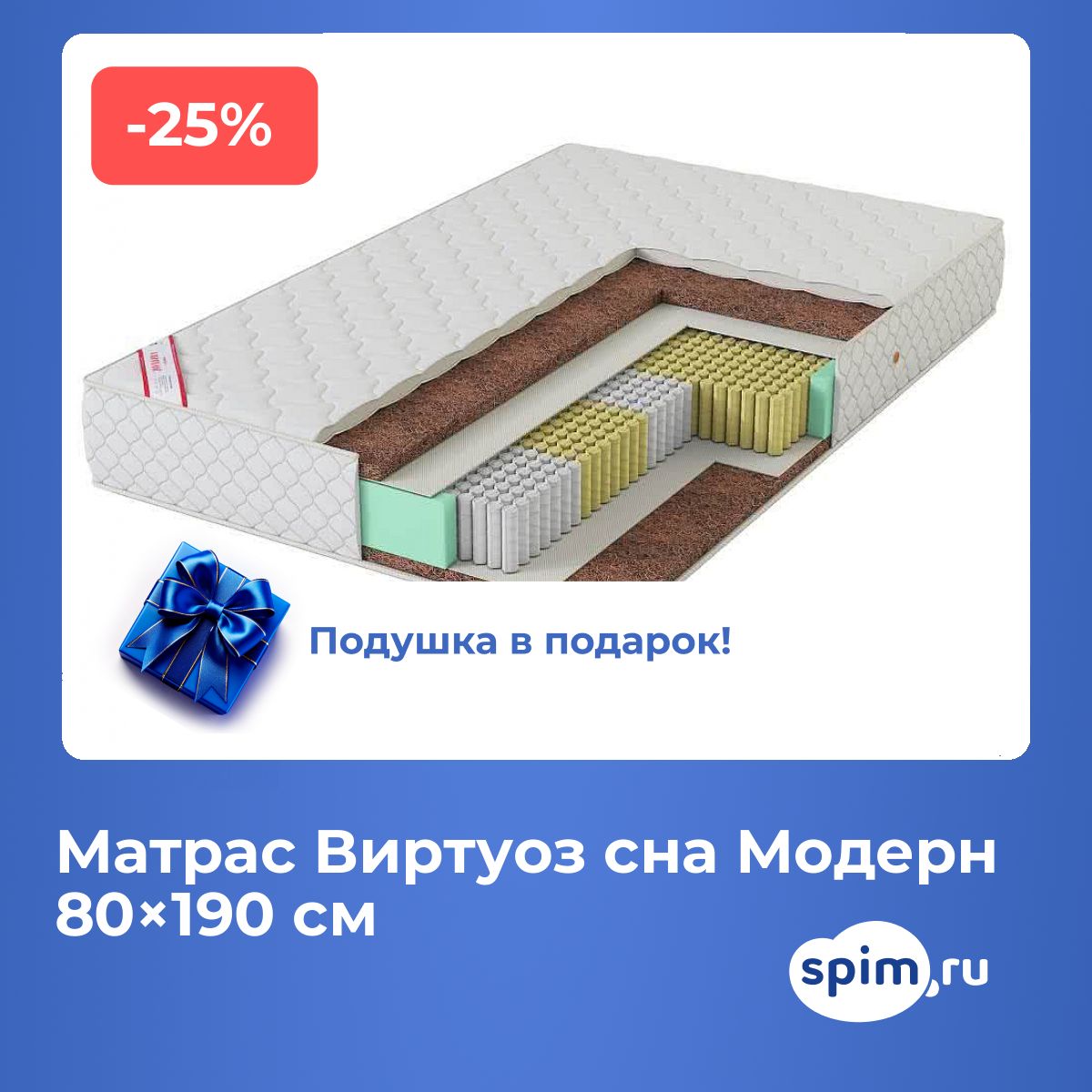 Односпальный матрас Виртуоз сна Модерн 80х190 подойдет для кроватей с размерами спального места, обозначенными как 80x190 см, 800х1900 мм, 190х80 см, 1900х800 мм (ширина 80 см, длина 190 см).