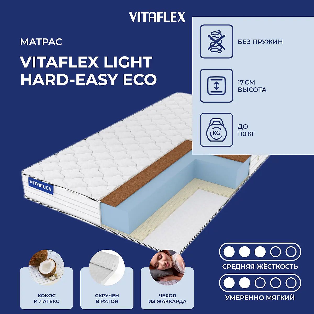 Матрас Vitaflex Light Hard-Easy Eco 120х200 смАртикул С-113122