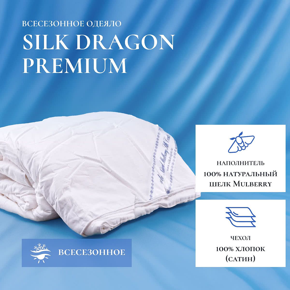 Полезные свойства шелка известны уже много тысячелетий. В шелке не живут бактерии, он не собирает пыль. Шелковое одеяло «Premium, всесезонное» — лучший подарок для себя и своих близких.