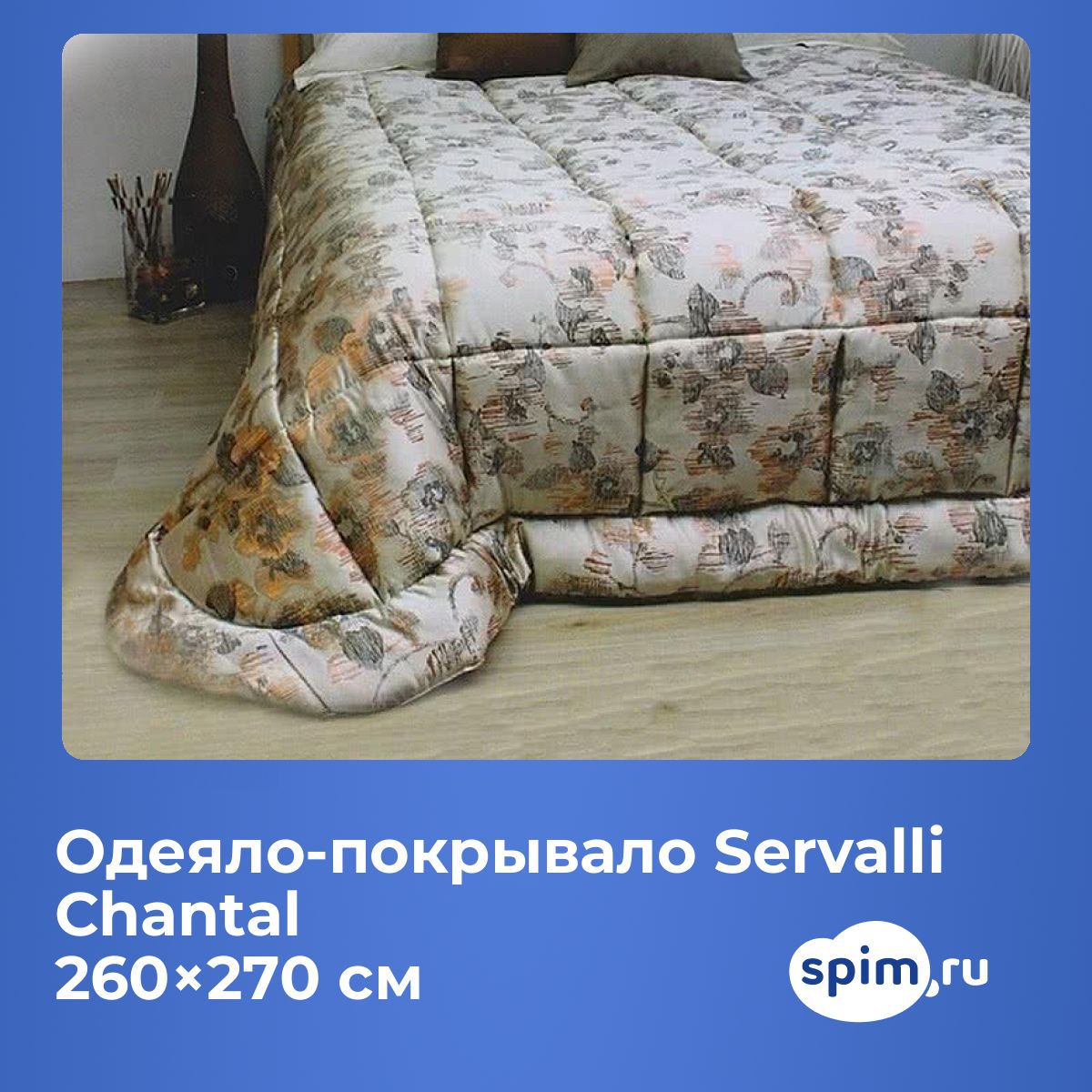 Материал: верх - 40% шелк, 60% хлопок; подкладка - 100% атласный хлопок.Наполнитель: тонкий синтепон. Размер: 260х270 см. Упаковка: фирменный чемодан.