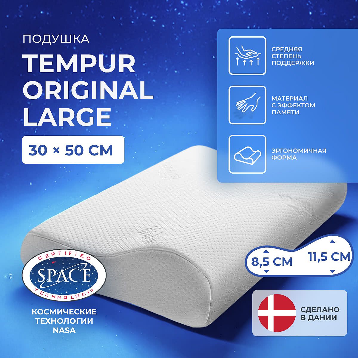 Средняя по степени поддержки подушка «Original Large» — универсальный вариант, подходит практически всем.
