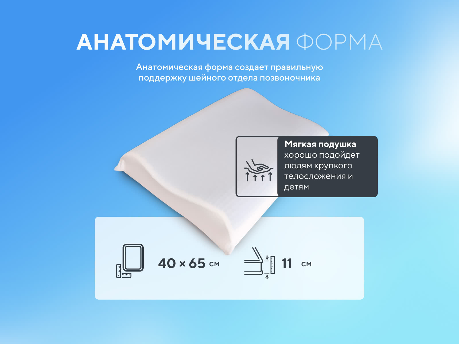 Мягкая подушка с валиками из вязкоэластичной пены с эффектом памяти.