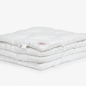 Чехол: пуходержащий Мако-батист (Mako-batiste), 100% COTТON, сертифицирован по OEKO-TEX® Standard. Плетение нитей Ne 100/100 TC 400. Цвет - белый. Бортики 4 см.Наполнитель: Верхняя сторона: волокно TENCEL® термоскрепленное высокосиликонизированным би-компонентом (100% TENCEL FIBER GRASS®). Нижняя сторона: полое полиэфирное волокно HOLLCON - 100% Polyester®. Крепление: резинки по углам. Размеры, см: